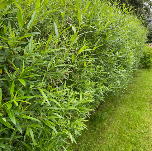 3. juni. Første hækklipning. I skellet i den lavest liggende side af haven deler jeg med naboen en cirka femten meter lang hæk - af pil. Piletræ ser man ikke ret ofte som hæk. Hækken blev plantet før min tid, men årsagen til at man valgte pil er sikkert, at stedet er meget fugtigt. I flere måneder hvert år kan der stå vand på jorden dér. Det er der ikke mange traditionelle hækplanter, der trives ved.